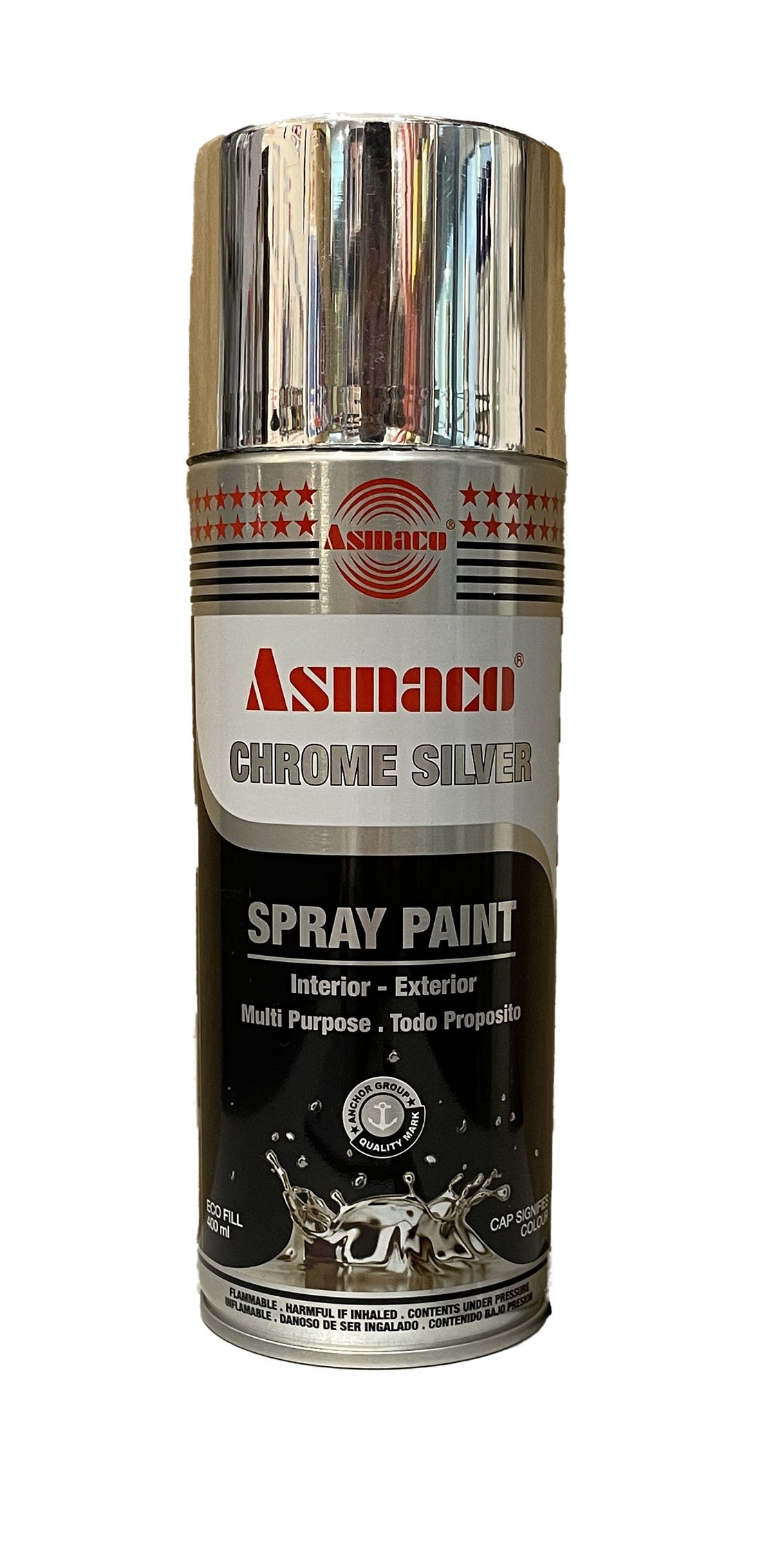 ASO-C-SILVER-400 - краска аэрозольная универсальная Asmaco (производства ОАЭ), цвет: №22 хромированное серебро RAL 9006, флакон: 400 мл.
