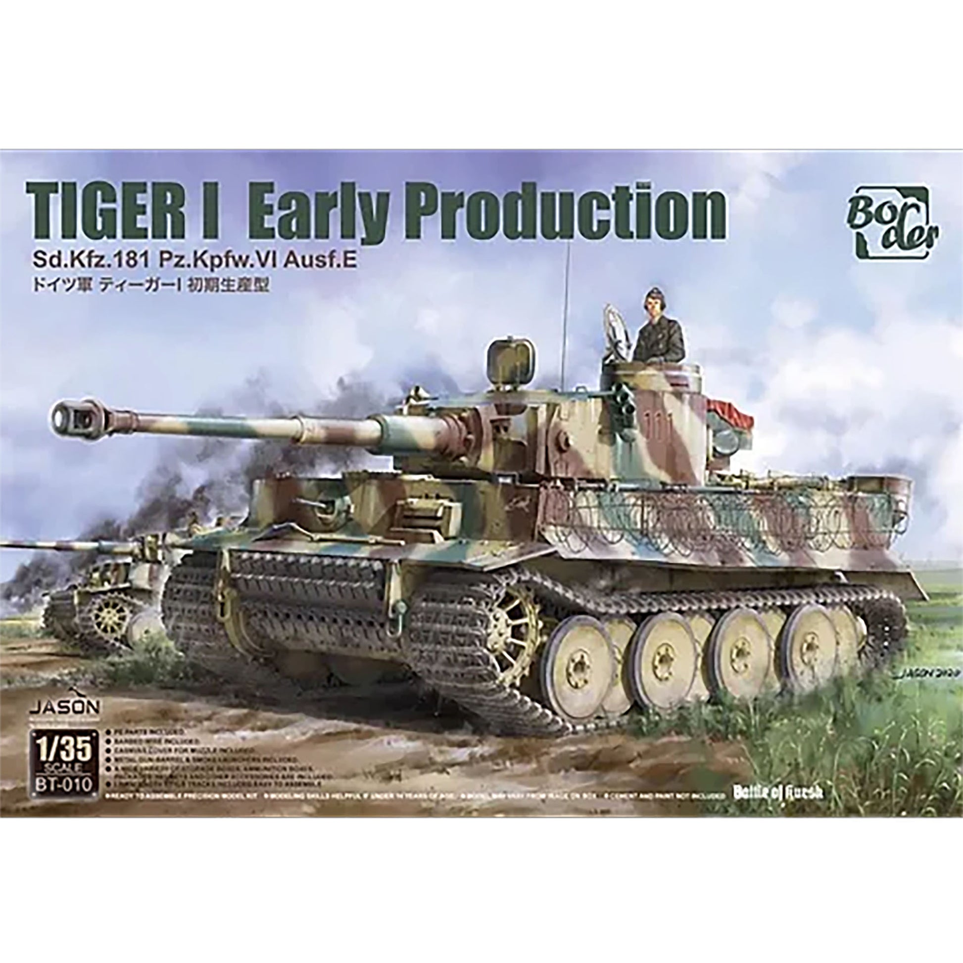 BDR-BT010 - склеиваемая модель тяжелого немецкого танка Sd.Kfz. 181 Pz.Kpfw. IV Ausf. E Tiger I ("Тигр") 505-го танкового батальона, модификации, участвовашей в Курской битве, в комплекте есть багажники, каски, чайники, ведра, спальные мешки, воронки, дымовые гранатометы, флаги, вещевые мешки, в масштабе 1/35