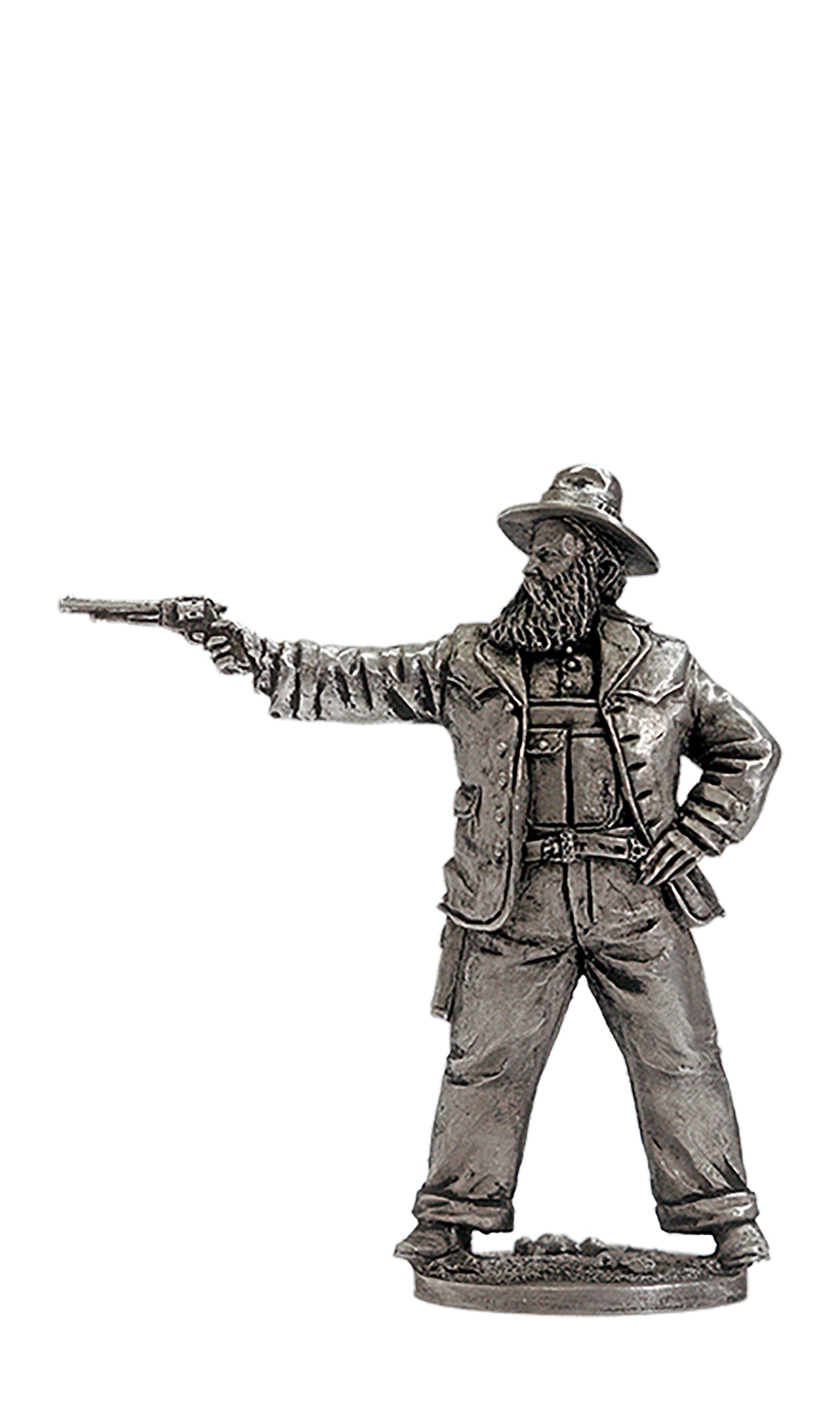 EK-WW-27 - оловянная миниатюра "Тучный ковбой с револьвером", масштаб 54 мм