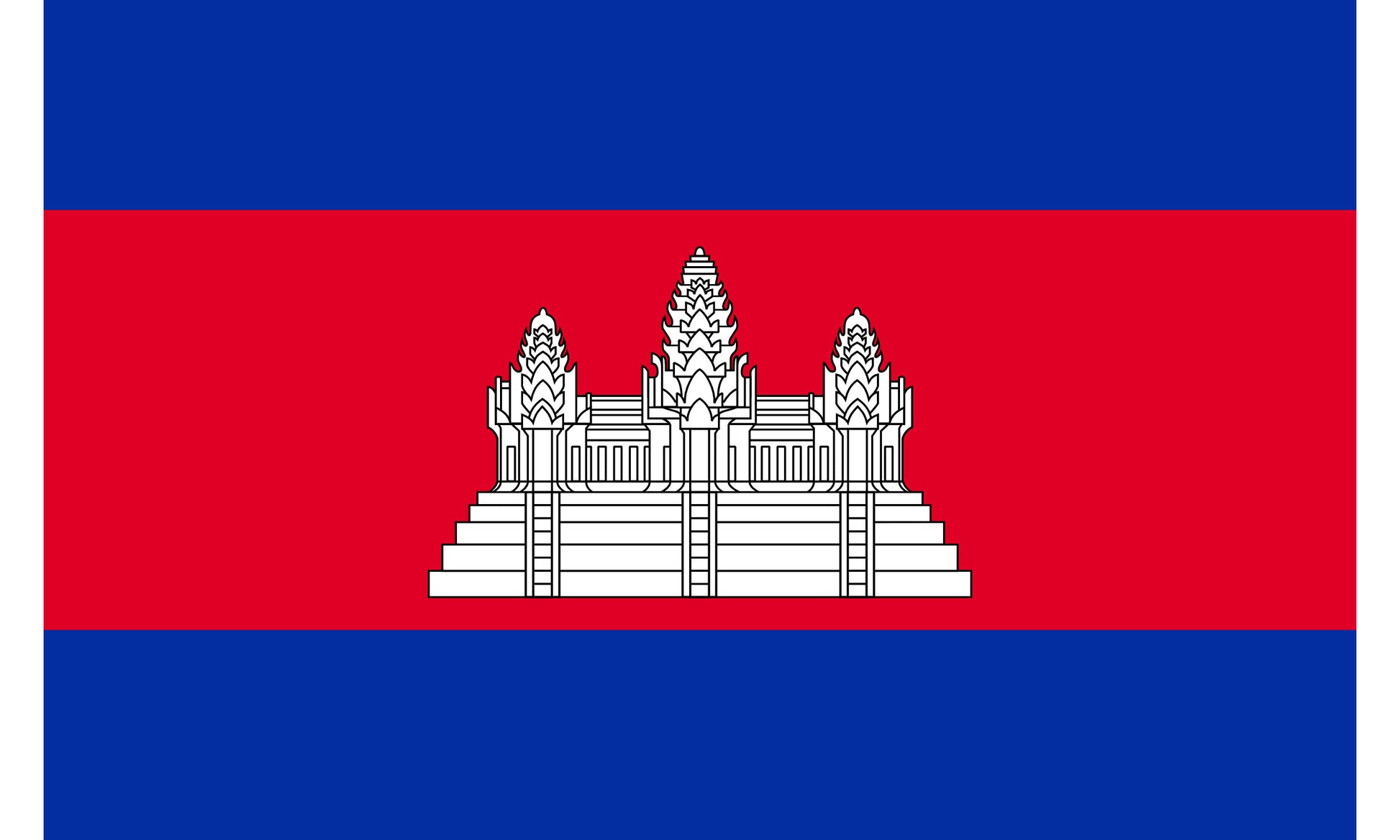 INR-CAM-15x22-2 - государственный флаг Камбоджи, размер: 15х22 см, материал: атлас. Печать с двух сторон. Подставка и шток приобретаются отдельно