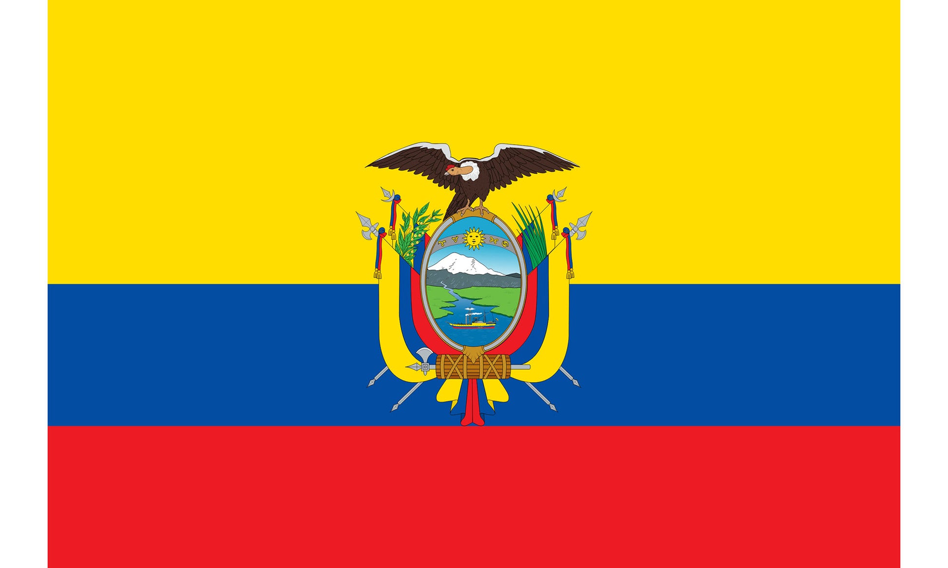 INR-ECR-15x22-2 - государственный флаг Эквадора, размер: 15х22 см, материал: атлас. Печать с двух сторон. Подставка и шток приобретаются отдельно