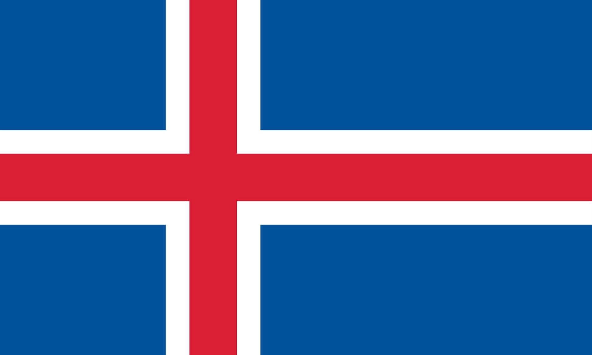INR-ICE-15x22-2 - государственный флаг Исландии, размер: 15х22 см, материал: атлас. Печать с двух сторон. Подставка и шток приобретаются отдельно