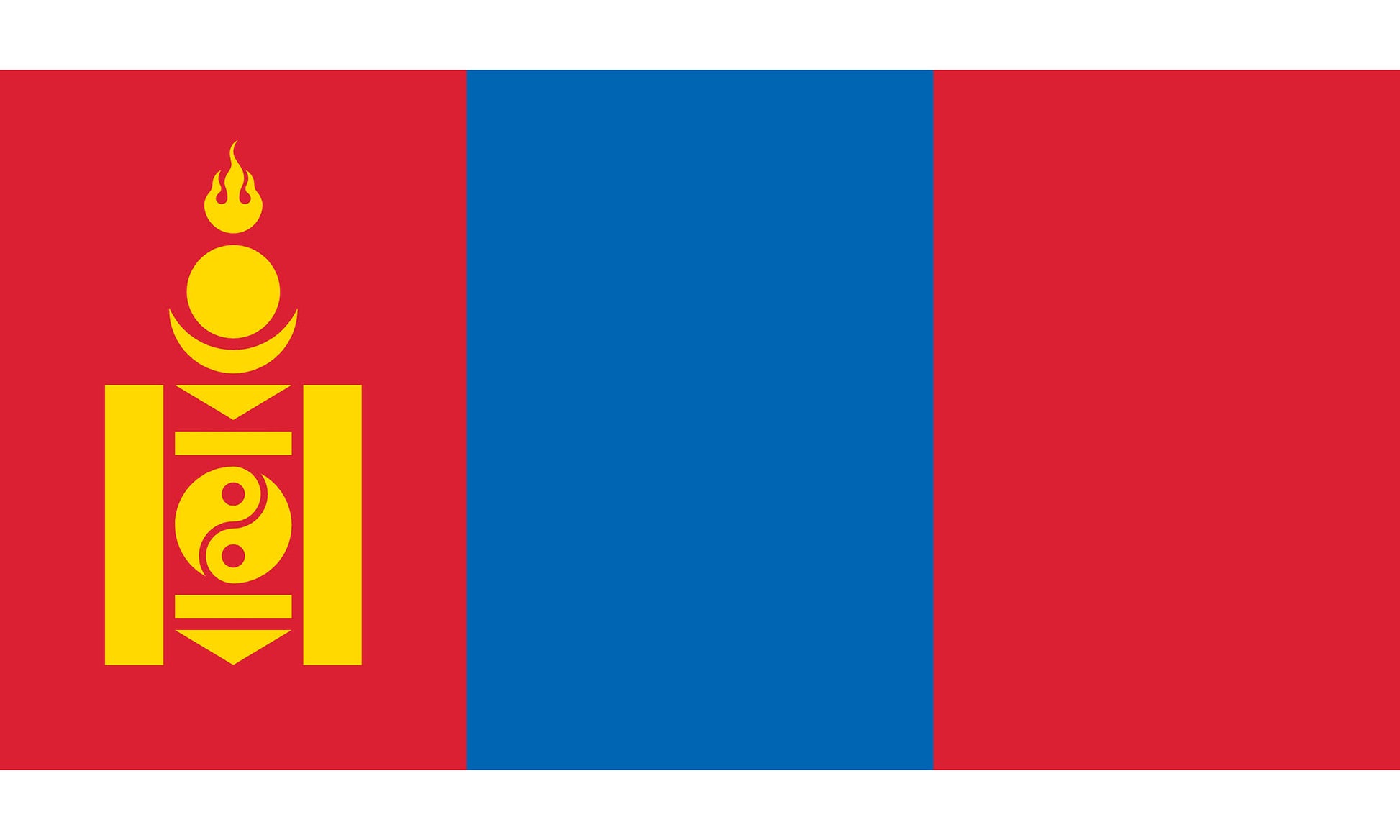 INR-MON-15x22-2 - государственный флаг Монголии, размер: 15х22 см, материал: атлас. Печать с двух сторон. Подставка и шток приобретаются отдельно