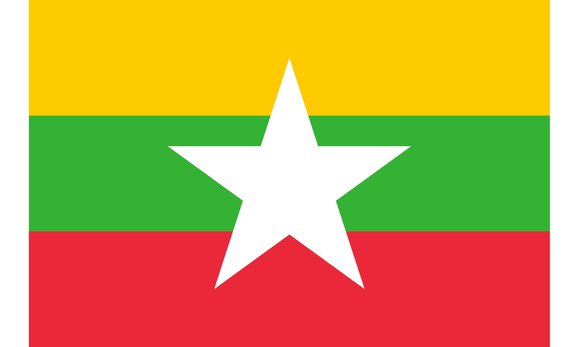 INR-MYA-15x22-2 - государственный флаг Республики Союза Мьянмы, размер: 15х22 см, материал: атлас. Печать с двух сторон. Подставка и шток приобретаются отдельно
