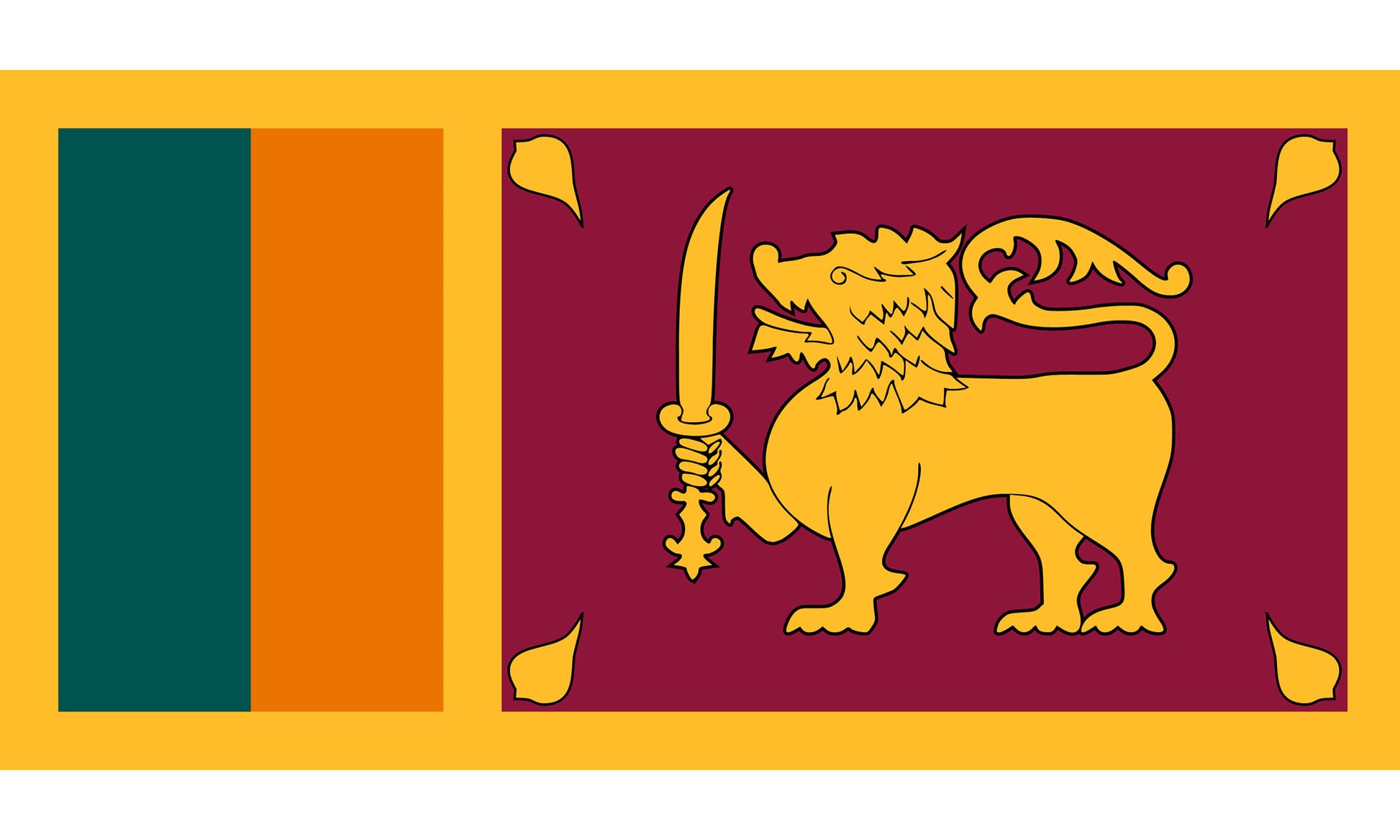 INR-SLN-15x22-2 - государственный флаг Шри-Ланки, размер: 15х22 см, материал: атлас. Печать с двух сторон. Подставка и шток приобретаются отдельно