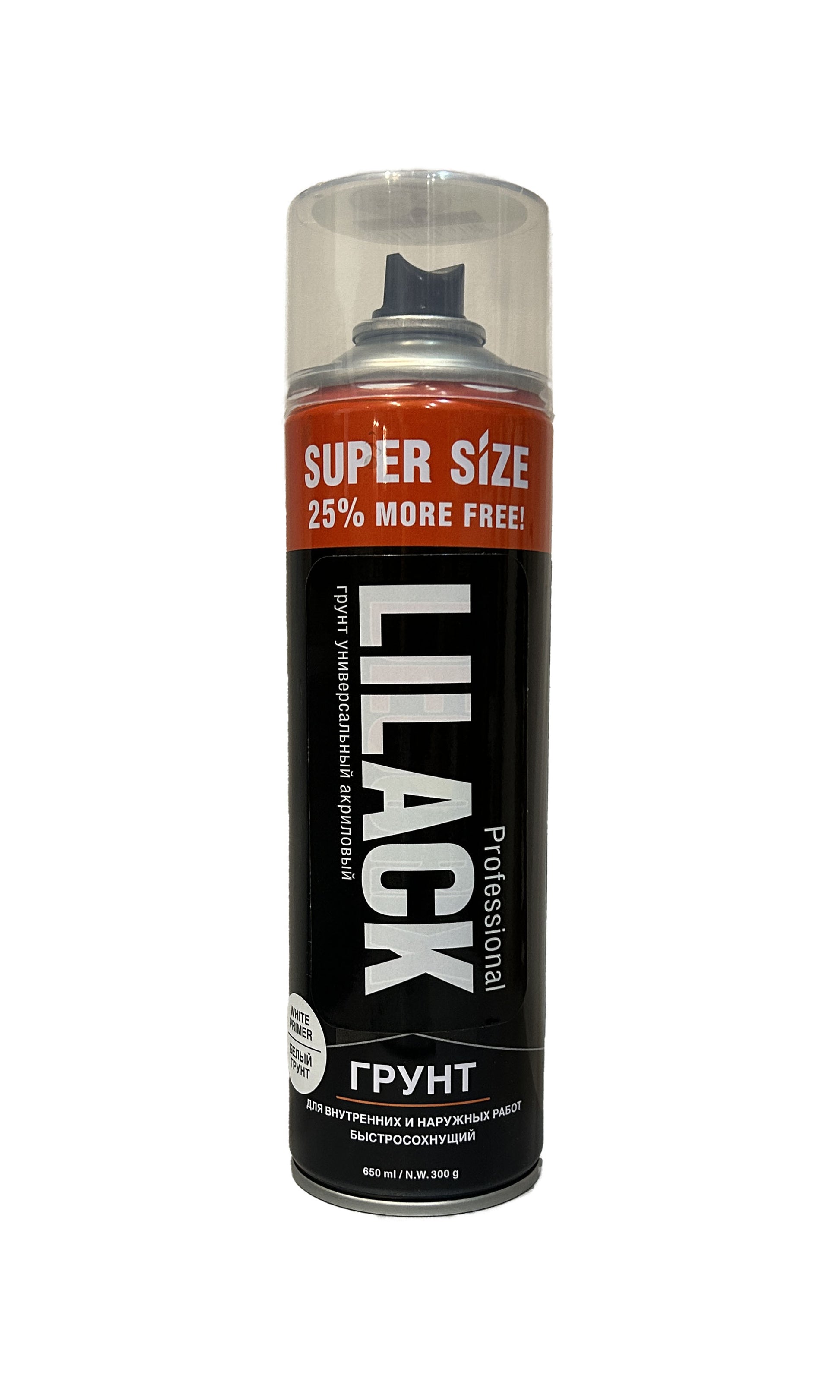 Высококачественный акриловый грунт Lilack PROFESSIONAL предназначен для подготовки металлических, деревянных, бетонных, каменных и других поверхностей перед последующим окрашиванием любыми видами лакокрасочных материалов. Грунт применяется для увеличения адгезии окрашиваемой поверхности с последующими слоями наносимых материалов, укрепления слабых поверхностей и снижения расхода последующих слоёв краски или эмали. Грунт обладает высокими порозаполняющими свойствами, образуя равномерно впитывающую поверхность. Аэрозольный грунт удобен для нанесения на труднодоступные поверхности