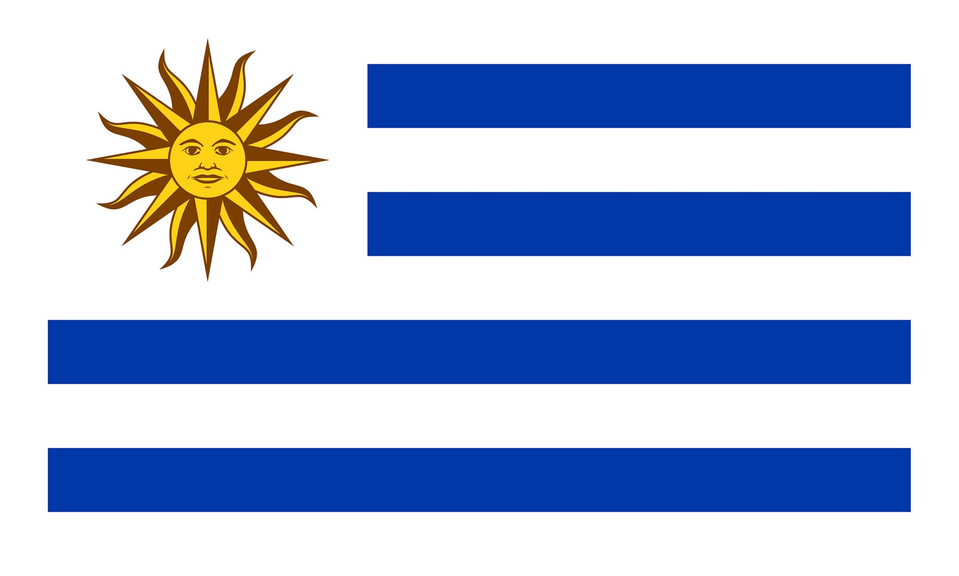 UF-URG-150x90 - государственный флаг Уругвая. Материал флага: полиэстер с бронзовыми кольцами, размер: 90 см х 150 см
